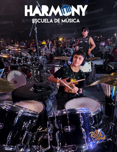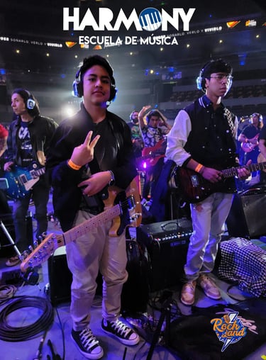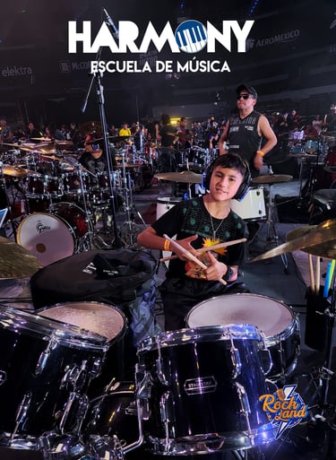 clases de guitarra, batería, canto, piano, bajo, ukelele y violín + ensayos y conciertos